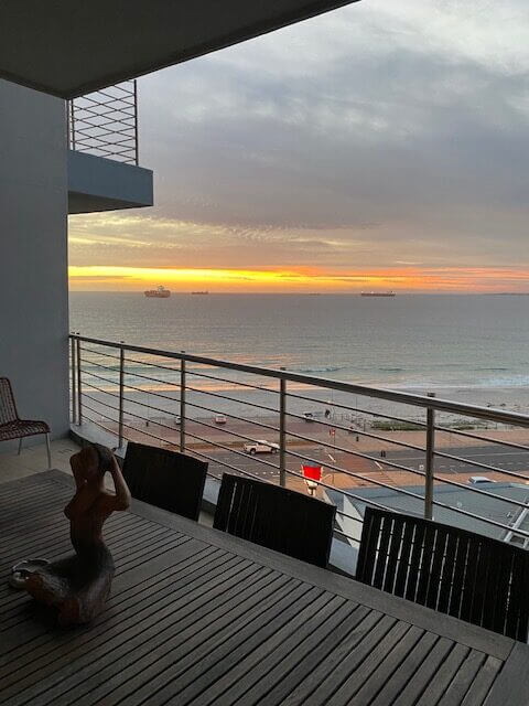 Second bedroom faces onto Blouberg Road. 2 single beds pushed together.